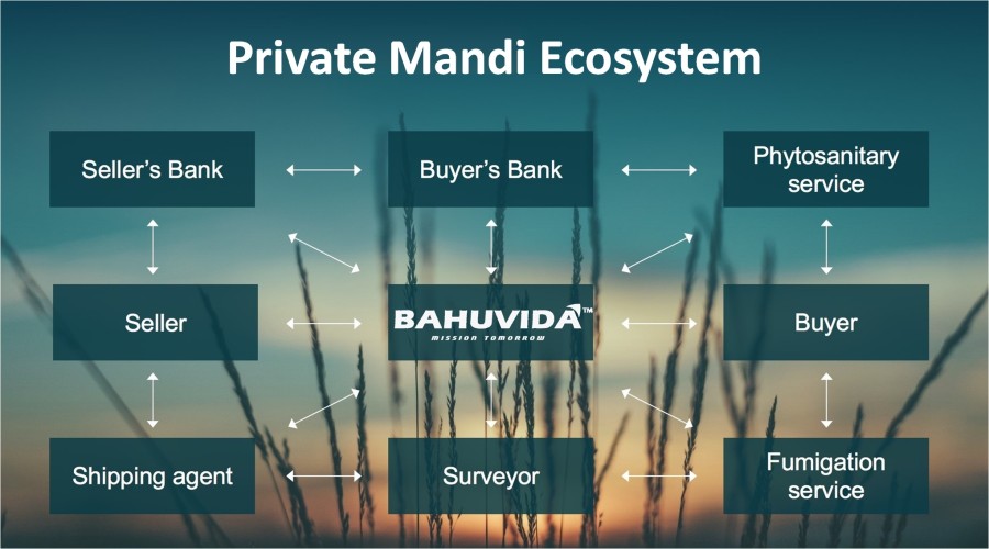 To address all these issues, we at Bahuvida Limited aims to improve farmers and rural traders access to markets by building modern rural agricultural warehouses called “Private Mandi” at village level with sophisticated marketing infrastructure for agri produces across the country. It means establishing semi-online trading platform and modern rural wholesale markets that are effective, professionally managed and responsive to farmers and rural trader's needs. With its first-of-its-kind Private Mandi's concept Bahuvida aims to create 88 agri trade centers in 18 different Indian states (which covers 549 districts) plan to serve yearly more than 1 million farmers by getting licenses from respective APMC's which are going to be act as “One Stop Shop” for farmers, traders and end-buyers. The 18 states are: Telangana, Andhra Pradesh, Tamil Nadu, Kerala, Karnataka, Maharashtra, Madhya Pradesh, Chhattisgarh, Odisha, West Bengal, Jharkhand, Bihar, Uttar Pradesh, Gujarat, Rajasthan, Punjab, Haryana and Delhi. Bahuvida have already identified the sites for such private mandi's and also short-listed the financial institutions/investors which will support these ventures.